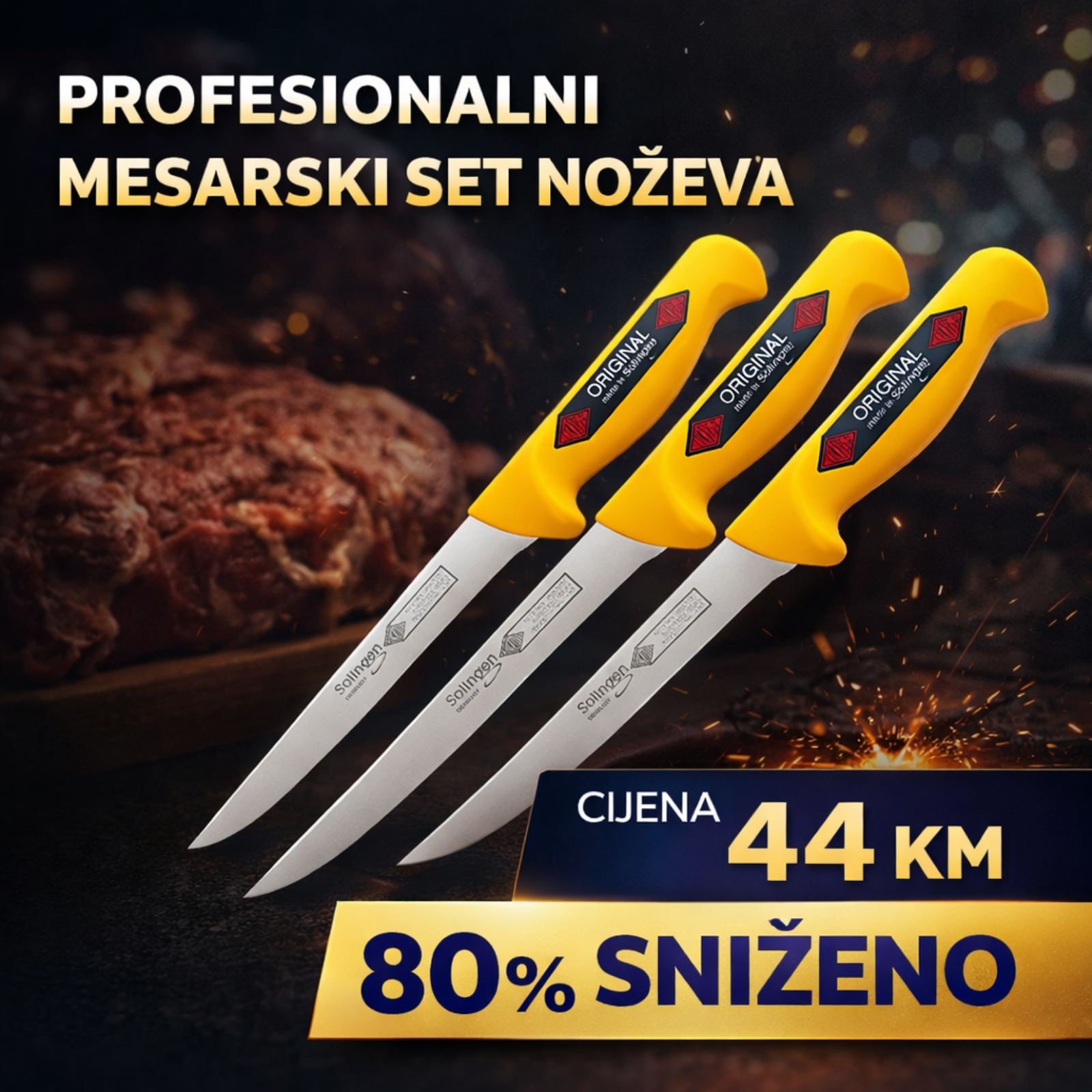 Set od 3 noža: Idealno balansirani za otkoštavanje, obradu i precizno rezanje mesa.